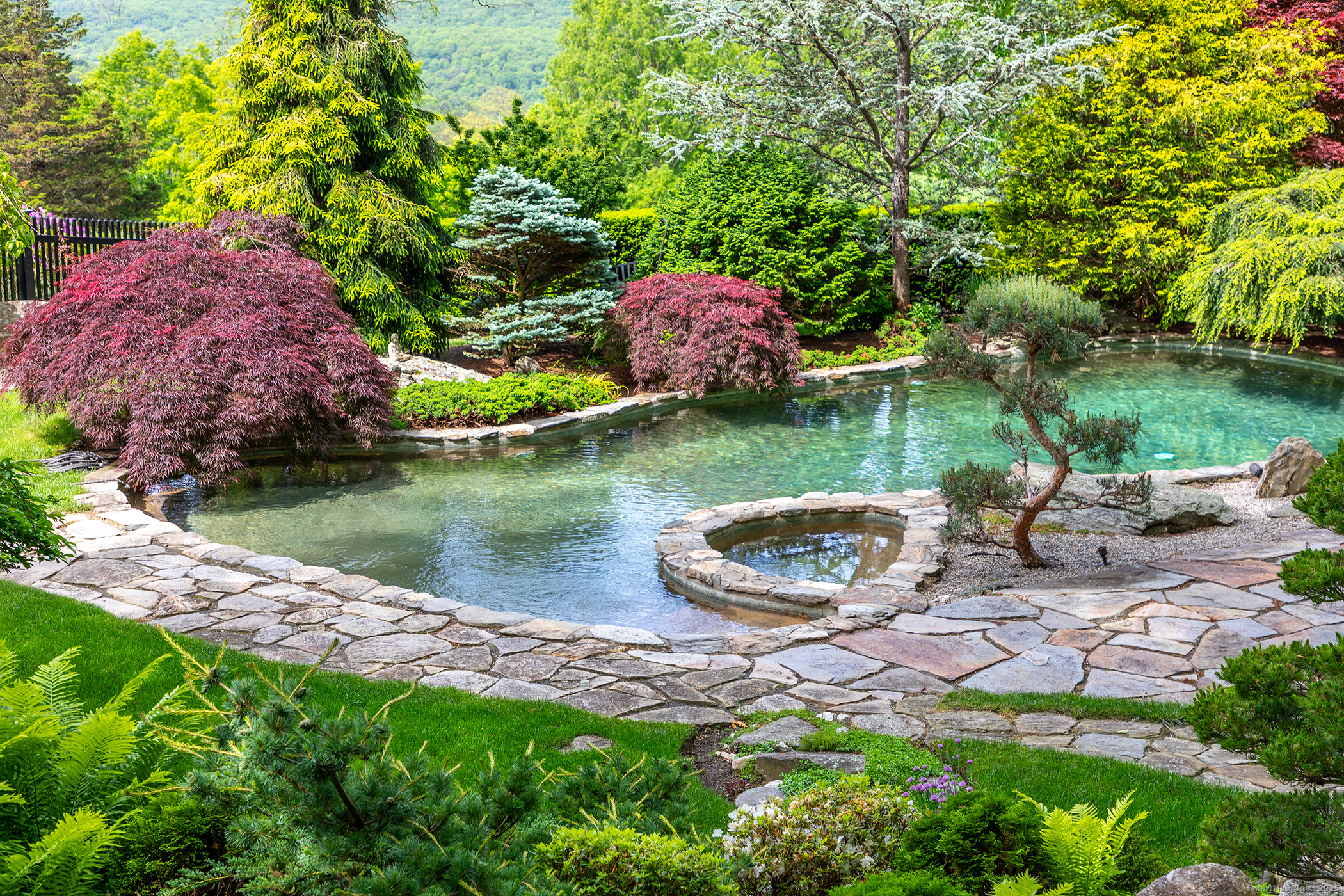 Privately Sited on a Hill in the Midst of 31+ acres, this Elegantly Renovated 5,000+ sq ft Colonial Offers Panoramic Sunset Views and Exceptional Privacy. Graciously Proportioned Rooms Populate the Main Level & Include: a Vaulted-Ceiling Living Room with Fireplace, Paneled Library, Inviting Family Room, and a Spacious Eat-in Kitchen with Top-tier Appliances. The Refined Primary Suite Features a Fireplace, ModernLuxury Bath, and Dressing Room. A Separate 1-Bedroom Apartment Adds Versatility. Outdoors, Discover A Heated Gunite Pool Surrounded by Mature Award-Winning Gardens. Large Stone Terraces & a Meandering Garden Path Add a Texture to this Layered Property. 3-Car Over-sized Attached Garage. Only Minutes from Roxbury, Washington Depot, and Historic Woodbury CT. First Time on the Market in Over 35 Years