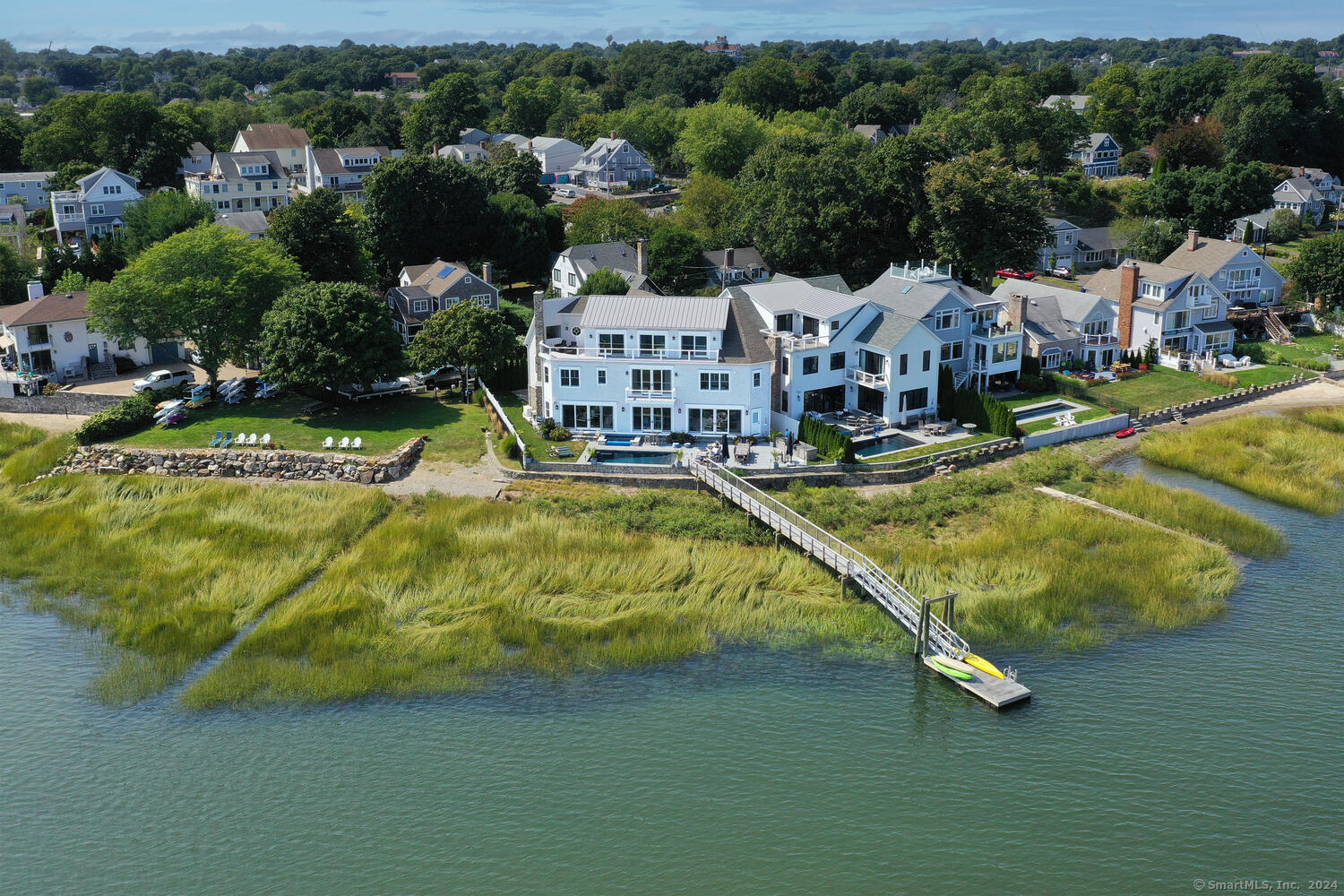 Welcome to 72 Shorefront Park-a recently built waterfront FEMA compliant masterpiece by renowned CJT Builders, where luxury and lifestyle meet in perfect harmony. Thoughtfully designed with the finest finishes and exceptional attention to detail, this elegant residence features 4 spacious bedrooms, 4 full en suite baths, and 3 half baths. Take in sweeping water views from nearly every room, or retreat to your private outdoor oasis complete with a sparkling pool, outdoor kitchen, and soothing hot tub. Boating enthusiasts will love the private dock with direct access to the tranquil waters of Long Island Sound-perfect for kayaking, paddle boarding, or exploring the picturesque Norwalk Islands. An in-home elevator provides seamless access to all levels, enhancing both comfort and convenience. Enjoy access to two association parks. Whether you're hosting unforgettable gatherings or savoring quiet waterfront moments, this exceptional home offers a refined blend of sophistication, comfort, and coastal charm and is ready for you to enjoy this summer.