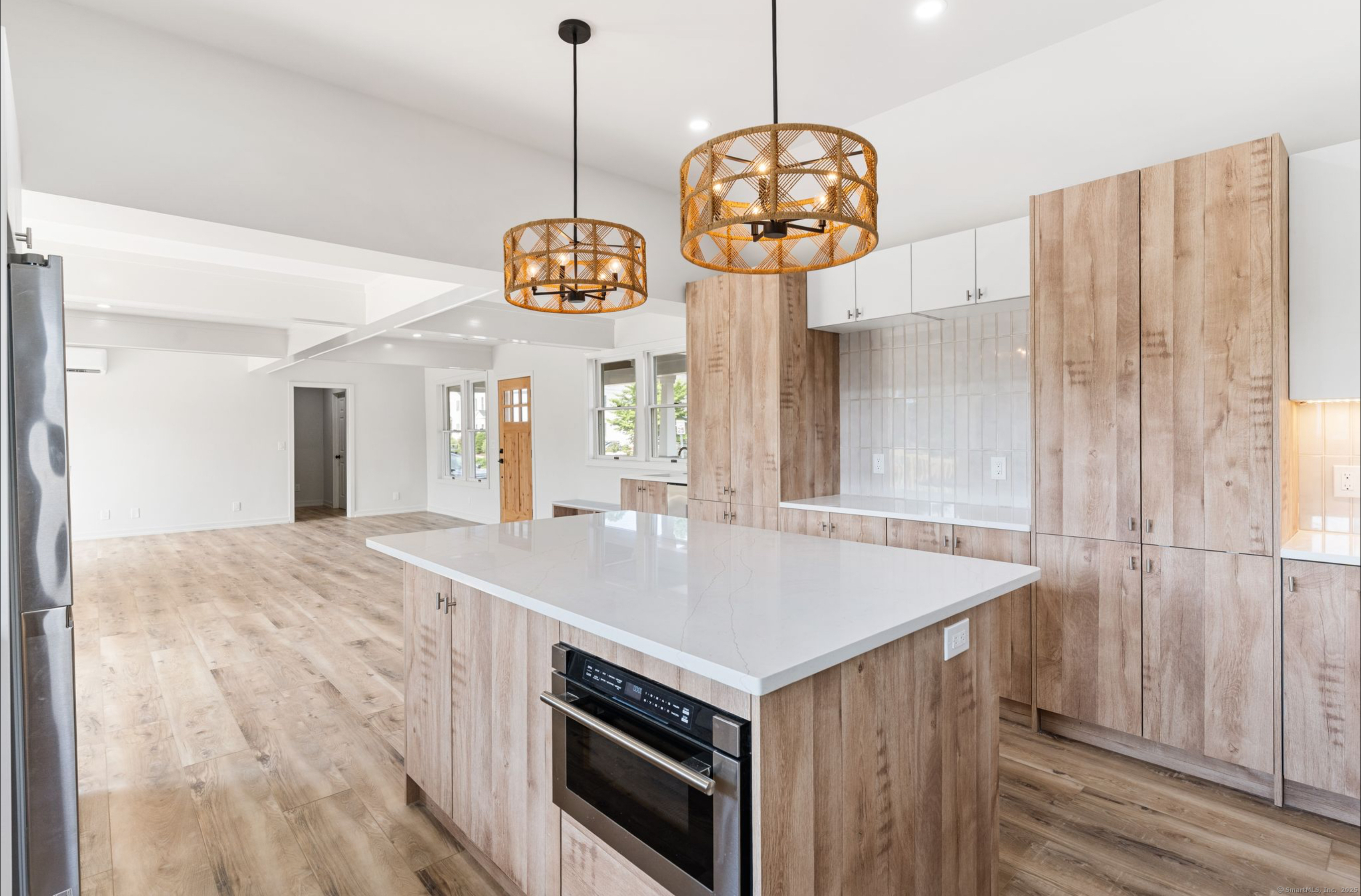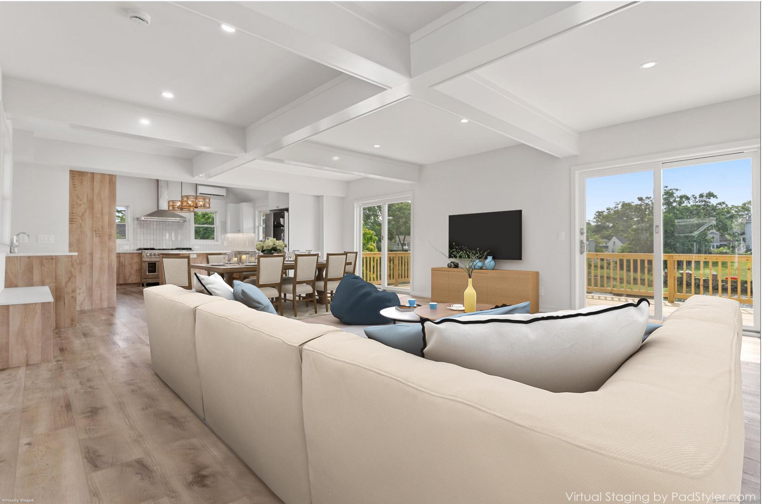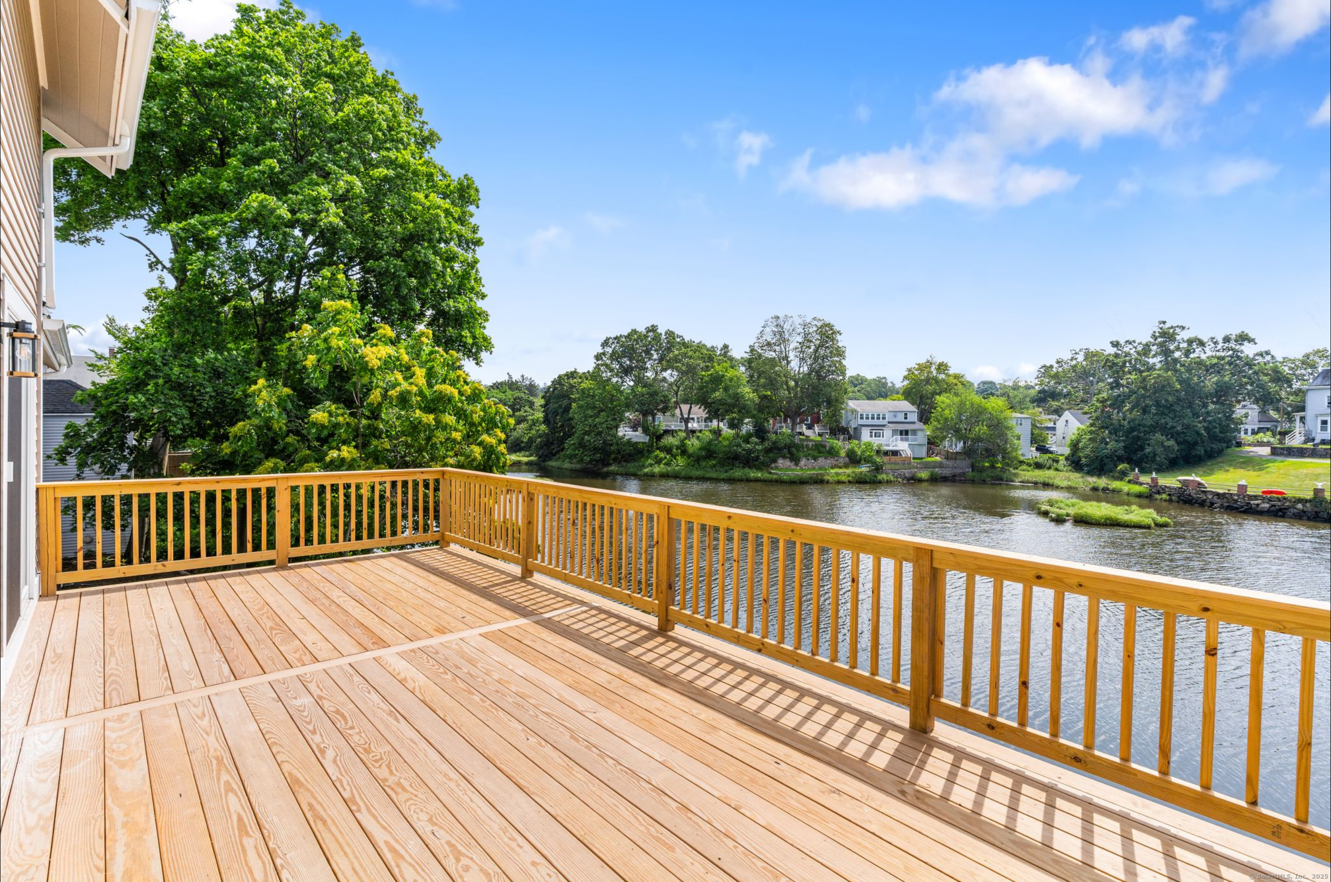 WATERFRONT! EAST NORWALK IN-TOWN! It's too good to be true. This fabulous completely renovated home has been totally reimagined by owner to take full advantage of the beautiful Mill Pond at the mouth of the East Norwalk Harbor. 2 recently built additions were added to bring this home into today's modern lifestyle. The entrance greets you with a wall of windows boasting a spectacular view of Mill Pond. The great room features coffer ceiling and plenty of room to entertain and dine. A stunning kitchen was added with everything today's buyers desire. Luxury appliances, large quartz island, gorgeous cabinets, wet bar and cathedral ceiling assures this room is the place to be. The oversized deck offers plenty of entertaining space with access to a lower patio. A stunning staircase invites you upstairs to a gracious hall leading you to two bedrooms, shared bathroom and laundry area. This split bedroom design offers separate primary suite with luxurious en-suite bath with custom shower, double sinks, large soaking tub and plenty of room to lounge. The large bedroom offers a balcony and high ceiling making it the perfect relaxing place. The bonus area in the home is the lower level. With walk out to a lovely patio overlooking pond, relaxing family room with wet bar. There's an another room that may be a bedroom or office and a full bath. Great walkable neighborhood, with restaurants, grocery, ice cream shops and minutes from SONO, Vets Park and East Norwalk RR station.