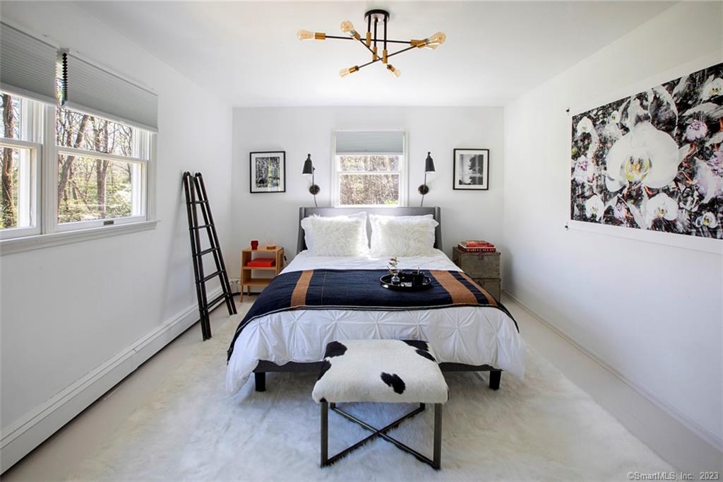 Whole House Now available from May 2026 at $6,000. Featured in CTC & G January 2024 Issue! Striking Modern Renovation of Artist's home in private, much sought after location in the rural Litchfield Hills. On a quiet country road, surrounded by woodlands, this 4-bedroom, 3 bath home rests on five acres with a gentle stream running through it. State of the art chef's kitchen with all new appliances including a wine cooler. Great Room with beams, soaring ceilings, hardwood floors and wood-burning fireplace. Outdoor deck for relaxing and listening to the quiet rush of the stream. Fully fenced backyard, BBQ Grill, Fire Pit. Ideally situated for hiking and birding in the thousands of acres of Roxbury Land Trust & Steep Rock Preserves. Lake activities and nearby the Shepaug River, local farmstands, local fairs, antiquing, cultural venues as well as wonderful restaurants and shops. Golf and tennis nearby. This home is close to the charming Town of Roxbury, minutes to Washington Depot and 90 minutes from NYC. The lower level which consists of Living/Dining Room, Kitchen, Full Bath and extra Laundry may be closed off creating an in-law apartment or similar such use offering additional privacy. Owner prefers longer terms.