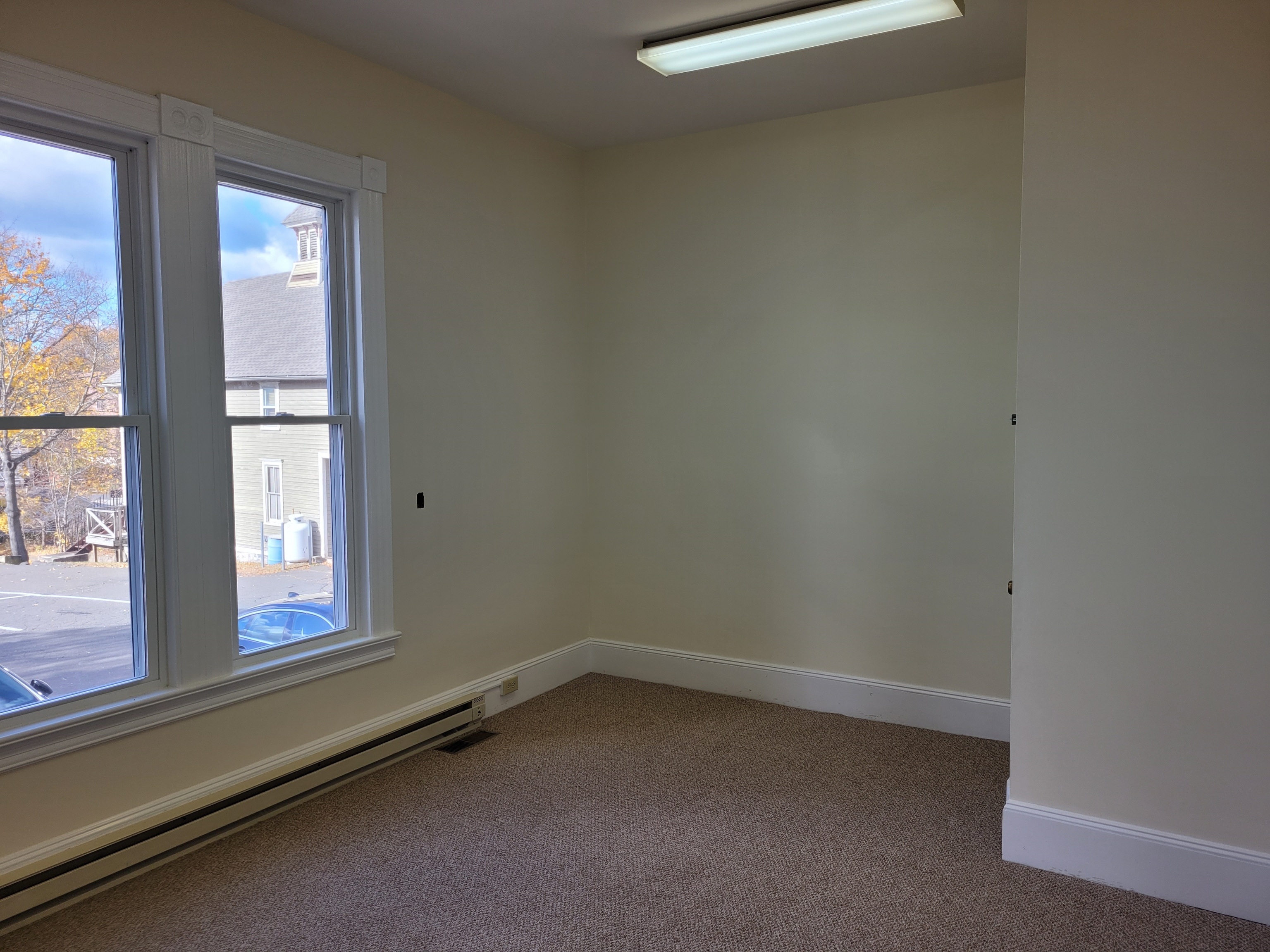 Suite 114, Restored Victorian across from City Hall, utilities included in rent, two room office, first floor, available immediately, tenant pays phone, internet and liability insurance.