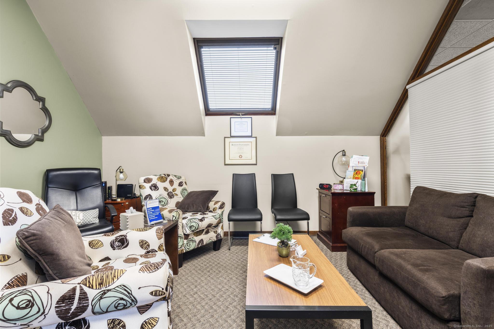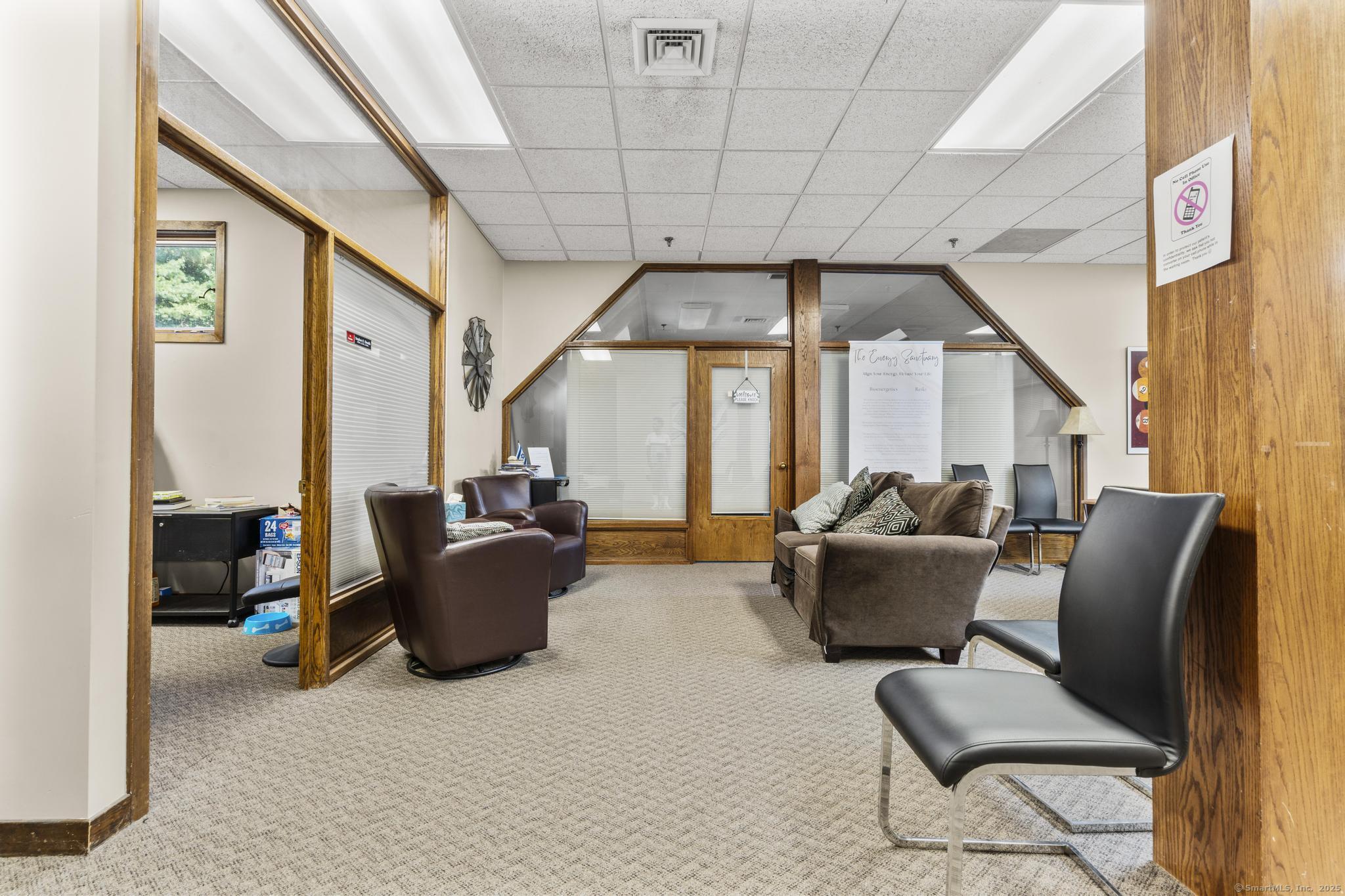 Prime office space for rent in Woodbury. Situated at the high-traffic intersection of Route 64 and Route 6, this contemporary office park offers exceptional exposure and convenience. The property features four separate buildings with modern architecture, abundant windows that flood the offices with natural light, inviting courtyards, and beautifully maintained mature landscaping. Located in building A, this unit is on the second floor with an elevator for ease of access. Rental is for one office as well as shared reception area and communal space - perfect for a therapist, accountant, lawyer, etc. Ample open parking ensures convenience for staff and clients alike. With its attractive design, professional setting, and unmatched accessibility, Cornerstone Professional Office Park provides an ideal space for your business to thrive.