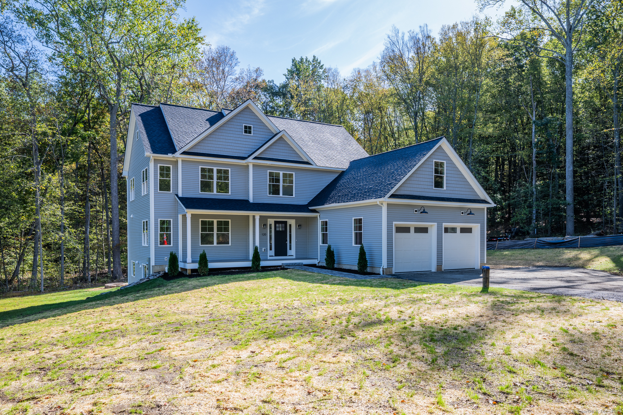 Brand New Construction! 4 Bedroom Colonial with hardwood floors throughout and custom finishing touches! Eat-in-kitchen with Quartz countertops and tile backsplash, center island with breakfast bar. Opens to spacious living room with coffered ceilings and built-in area for dry bar. Dining room, mudroom, and powder room round out the first floor. Upstairs 4 large bedrooms. Primary bedroom suite with gorgeous attached full bath and massive walk-in closet with built-in shelving. Primary bath with frameless shower, dual vanities, and soaking tub. 2nd, 3rd, and 4th bedrooms all amply sized and serviced by an additional full bath. Convenient upper level laundry room. Fully finished walk-out basement with additional half bath. Serenely set lot with well-sized lawn that backs up to woods. Large trex deck walks down to patio with fire pit. High efficiency mechanicals include heat pump, central air, etc... This home is beautiful and will sell fast. Taxes and assessment pending.