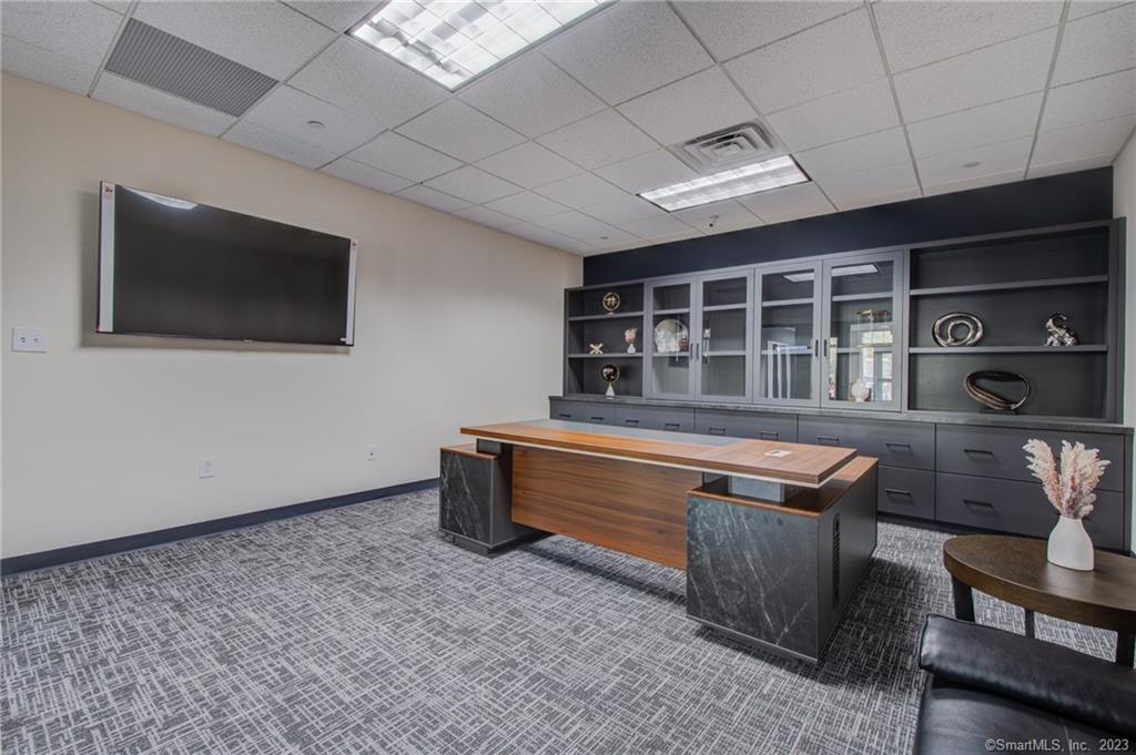 Class A, 9,441 SF second-floor office in the award-winning Heritage Center mixed-use development. Designed for larger users, the space supports executive offices, conference and training functions, and back-office operations. The suite is largely built-out with private offices, conference and training rooms, and full staff amenities, providing an efficient, institutional-quality layout that minimizes upfront build-out requirements. Abundant natural light, dual entrances, and elevator access from the main lobby deliver a polished corporate presence. Located just off I-84 and immediately adjacent to the Heritage Hotel, offering convenient accommodations for visiting or out-of-state staff, with several restaurants and delis within walking distance. Ownership is open to competitive Class A lease structures and selective improvements for qualified long-term tenants.