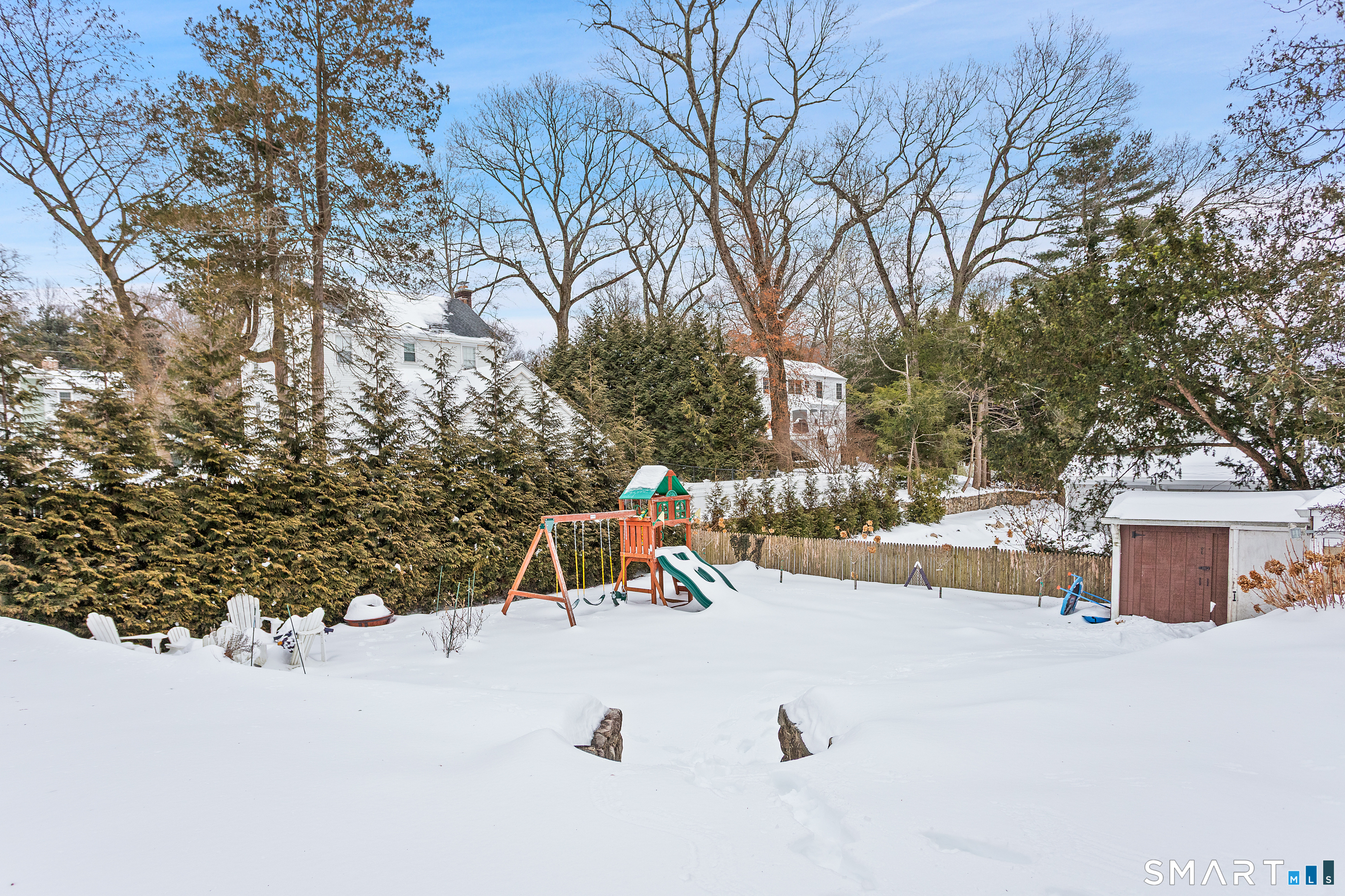 Sun-drenched and full of character, this beautifully updated English Colonial is set on a quiet, picture-perfect street in one of Noroton Heights' most desirable neighborhoods, a quick walk to the elementary school, a mile to middle school, steps to Woodland Park, and moments to shops, restaurants, and the NYC train. Blending timeless 1920s charm with thoughtful modern upgrades, the home welcomes you with an inviting foyer that opens to a gracious open plan living room with fireplace and dining room, perfect for entertaining, plus a private study that also makes a great playroom. The updated chef's kitchen includes a Wolf range and quartz countertops, and flows to an expansive entertaining patio and fully fenced backyard, complete with an irrigation system. Upstairs are three spacious bedrooms and an additional office. The finished daylight/walkout lower level offers a versatile playroom, along with a recently upgraded mudroom and laundry. New central air conditioning added in 2025. New washer and dryer in 2023. Improvements in recent years also include 2 fully renovated bathrooms, refinished hardwood floors, fresh interior paint, updated lighting, Nest thermostat, and an electric pet fence. Current owners have also added extensive plantings to the landscaping in the home's pretty and private property. City water/sewer/gas. Ask about garage and primary bath plans. Enjoy an easy and engaging lifestyle full of charm, style and easy access to all Noroton Heights has to offer!