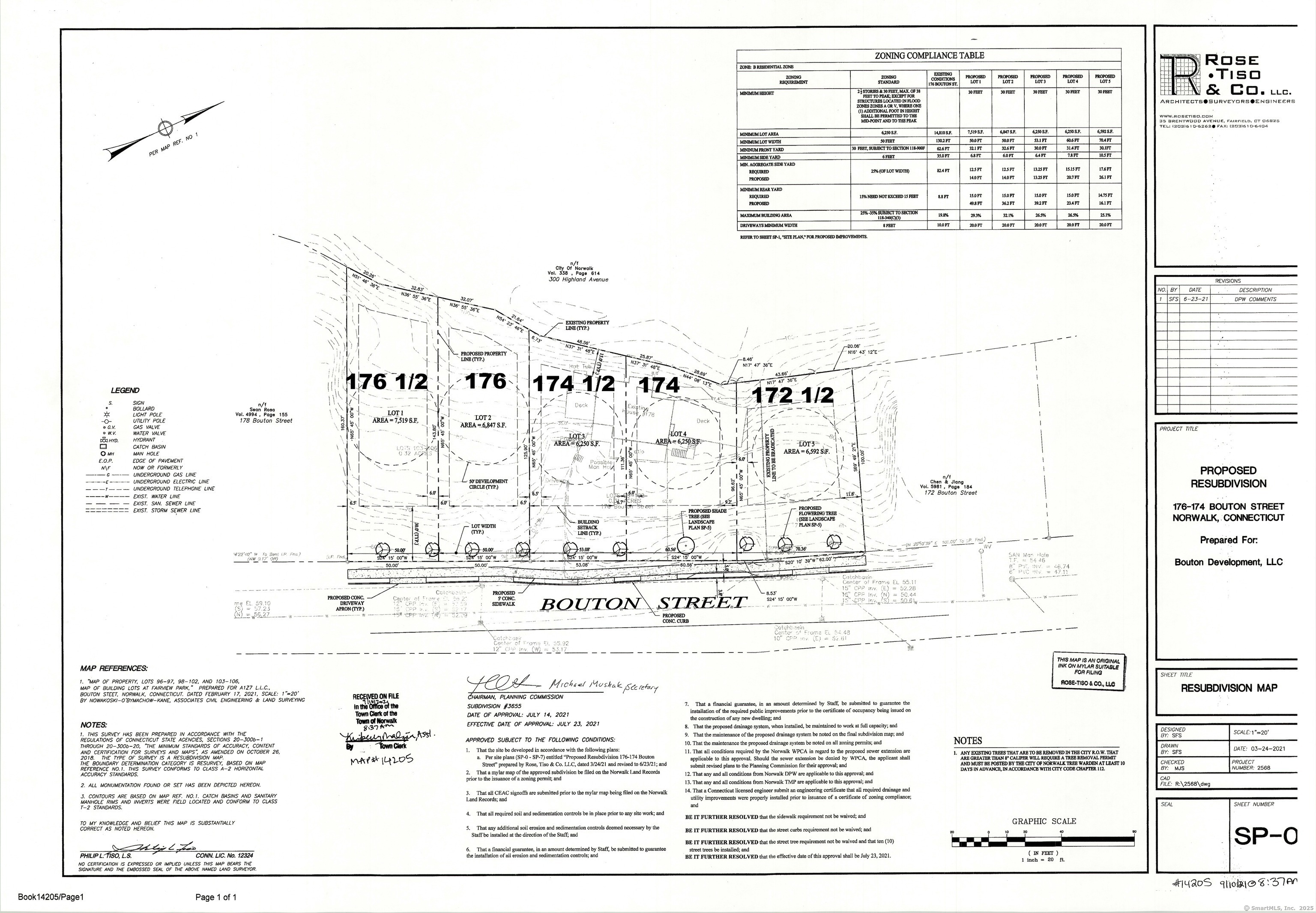 Price $799,000 5 Lot Approved Subdivision for Sale. Shovel Ready. Lots 172 1/2, 174, 174 1/2. 176 & 176 1/2 Bouton Street, Norwalk. Map 14205 recorded with the Norwalk Town Clerk. All engineering work done by Rose Tiso of Fairfield, CT. All utilities including sewer, water, electric, cable, & gas available.