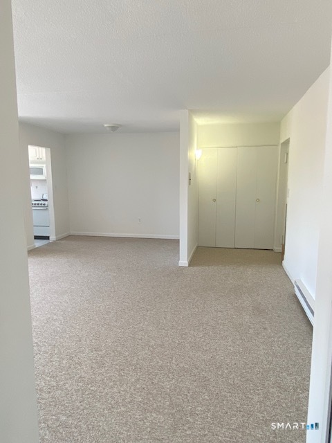 Welcome home to this large, beautifully maintained one-bedroom condo located on the top floor of an elevator building overlooking the scenic Norwalk Green. With high ceilings and wall-to-wall carpeting, this bright and airy unit offers both comfort and style in a prime location. The kitchen is fully equipped with a dishwasher, large refrigerator, four-burner stove, and abundant cabinet space - perfect for cooking and entertaining. The bedroom features a custom-designed, floor-to-ceiling armoire complete with lined jewelry drawers, providing elegant and practical storage solutions.